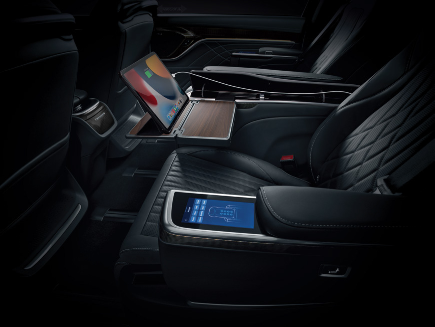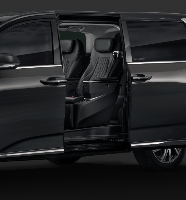 CAPTAIN SEATS can be electronically adjusted to 12 ways. Control all systems via your personal touchscreen while receiving full all-round vision through the DUAL SUNROOF and expansive side windows.